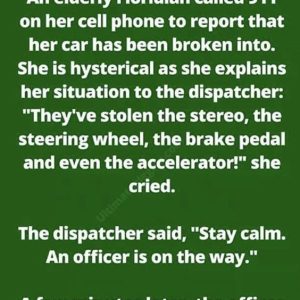 An elderly Floridian called 911 on her cell phone to report that her car has been broken into. She is hysterical as she explains her situation to…