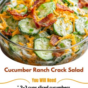 Cucumber Ranch Crack Salad Cool, creamy, and packed with crunch—this viral salad is a summer must-try. Fresh cucumbers, sharp cheddar, smoky bacon, and tangy ranch come together for…