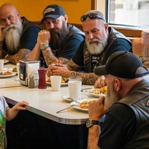 It was a quiet evening at a small-town diner when a group of bikers, road-worn yet cheerful, filled the corner booth with laughter and stories from the…