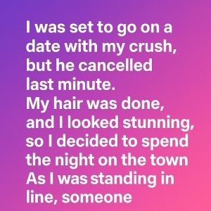 I was set to go on a date with my crush, but he cancelled last minute. My hair was freshly styled, my dress chosen with care, and…