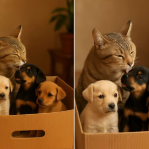 Cat Becomes a Mother to Orphaned Puppies in the Sweetest Way