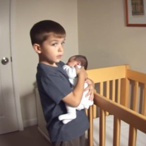 In the stillness of dawn, a mother stood motionless, her heart pounding as she watched her eldest son cradle his baby brother with trembling arms. His whisper…